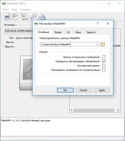 MakeMKV - программа позволяющая в один клик конвертировать Blu-ray/DVD диск (или папку), в MKV - Remux, всего за 5 минут! Программа прекрасно работает с защищенными дисками, теперь никаких региональных ограничений быть просто не может. Способна сохранить все имеющиеся аудио и видео дорожки на диске, можно полностью сохранить информацию о главах, MakeMKV также сохранит все метаданные.
